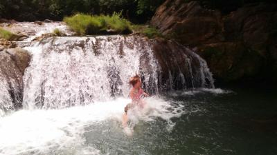 Am Wasserfall hatten wir viel Spaß beim Baden und Wassermelone essen.